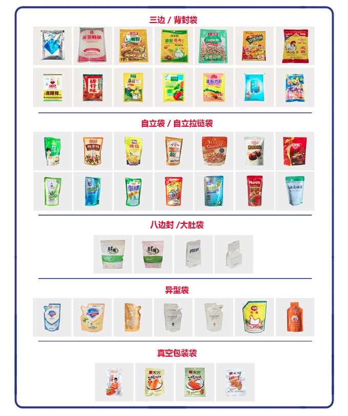 軟包裝的特點就是可以隨意變形,而不像玻璃包裝,鐵盒包裝,木箱包裝等硬質包裝他們不能夠隨意變形。所以軟包裝在日常生活應用非常廣泛,像我們去超市見到的食品袋子,膨化食品袋子,乳制品袋,冷藏食品袋,堅果炒貨袋子,日化美容品袋子等等都屬于軟包裝。在軟包裝上更多的體現其個性化特性。