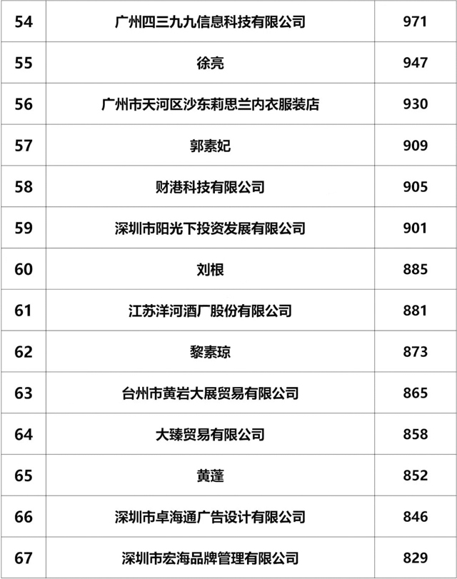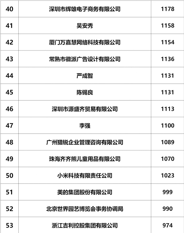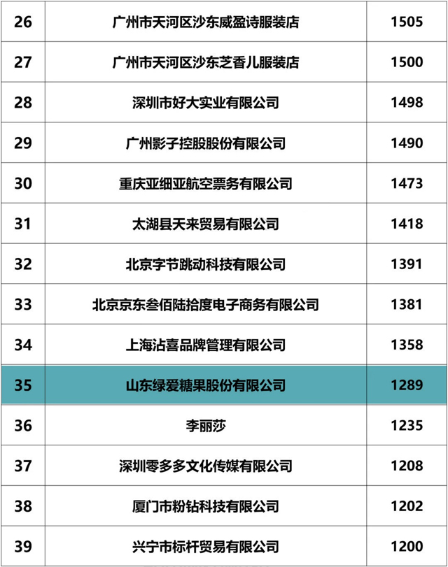 截止2018年6月30日,山東綠愛(ài)糖果股份有限公司,商標(biāo)申請(qǐng)1289個(gè),,全國(guó)排名第35位,山東省排名第1位!